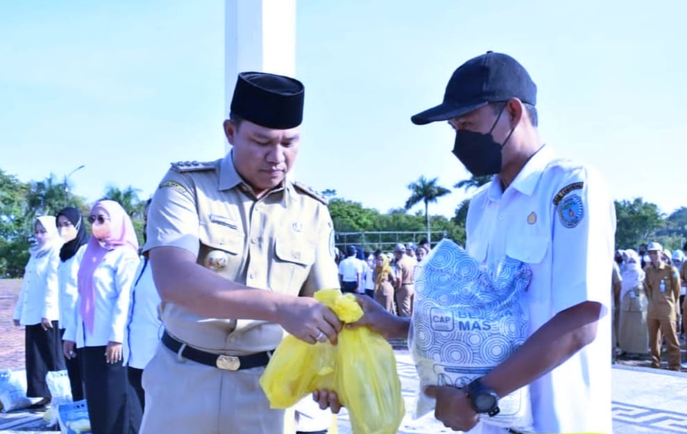 KANALKALIMANTAN.COM, NANGA BULIK – Bupati Lamandau H Hendra Lesmana menyerahkan secara simbolis paket sembako murah kepada perwakilan tenaga kontrak Pemkab Lamandau, Senin (12/12/2022).