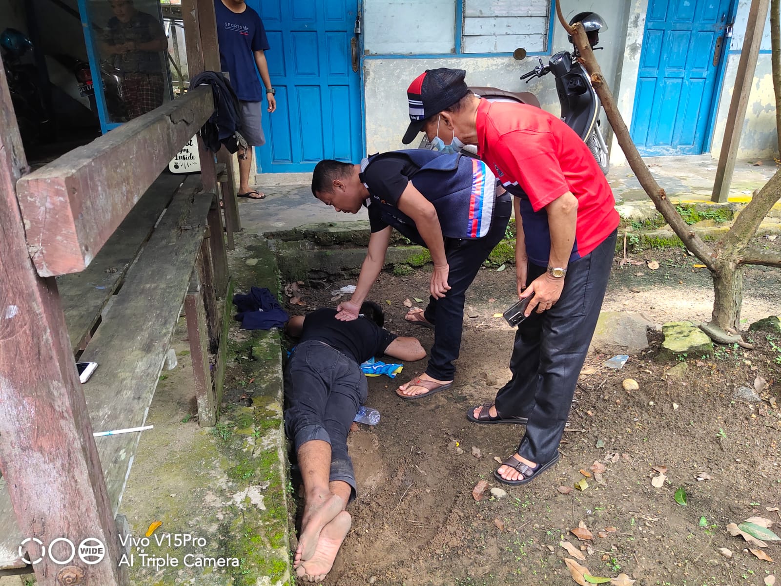 Diketahui laki-laki tersebut berinisial H alias Uncuy berpakaian serba hitam ditemukan dalam posisi tengkurap di tanah.