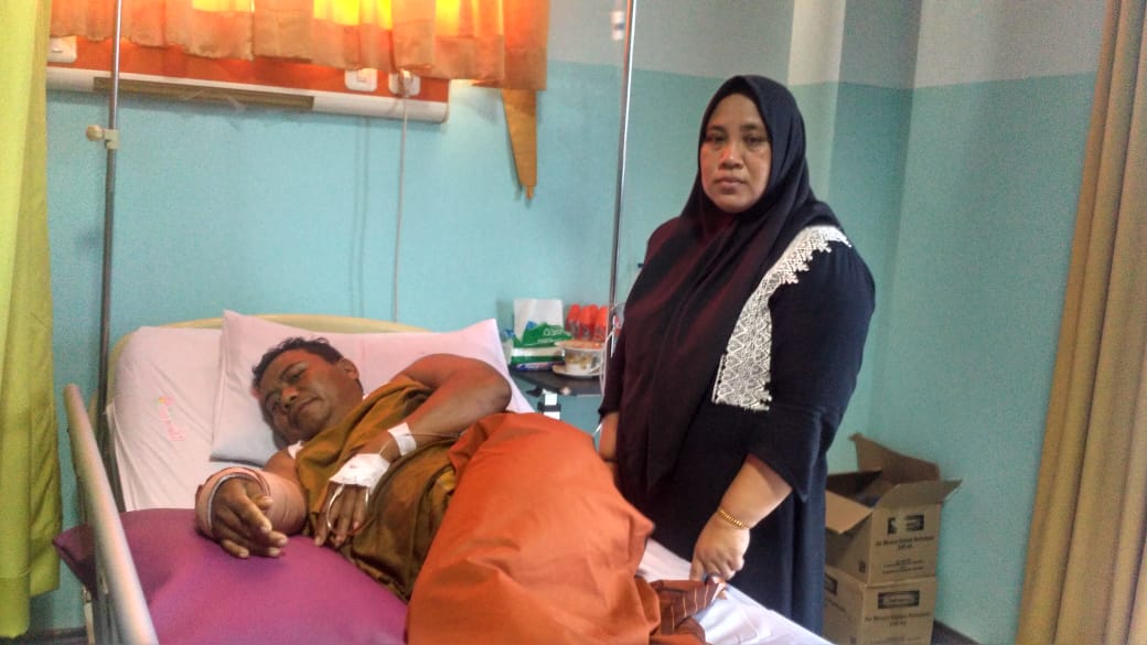 Teks: Marsuli yang saat ini masih terbaring di rumah sakit didampingi istrinya. Foto: rendy