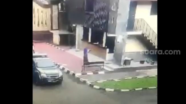 Berdasarkan video amatir yang beredar, terduga teroris itu tampak seperti mengacungkan senjata ke petugas yang berjaga di sebuah pos.