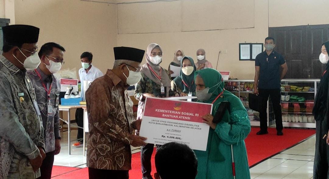 KANALKALIMANTAN.COM, BANJARBARU – Bantuan Asistensi Rehabilitasi Sosial (Atensi) dari Kemensos RI yang diserahkan oleh Wakil Presiden Republik Indonesia, KH Ma’ruf Amin disambut hangat oleh seluruh penerima manfaat.
