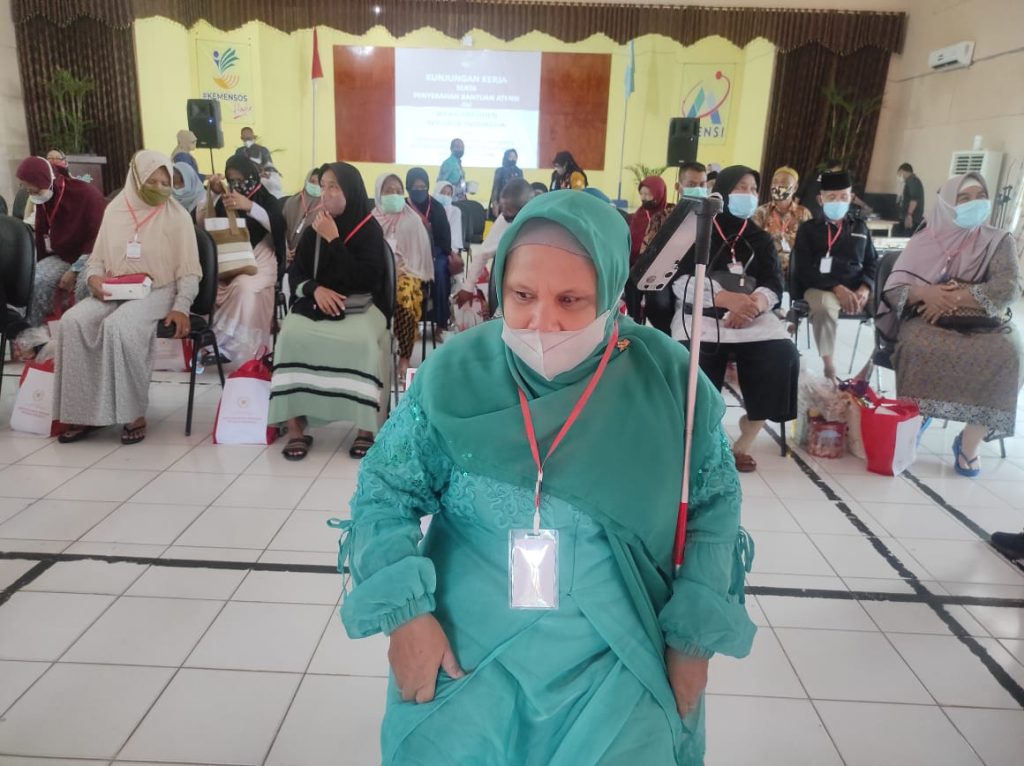 Salah seorang penerima manfaat penyandang disabilitas, Turiah mengaku sangat senang dengan adanya bantuan yang diserahkan langsung Wapres KH Ma’ruf Amin.