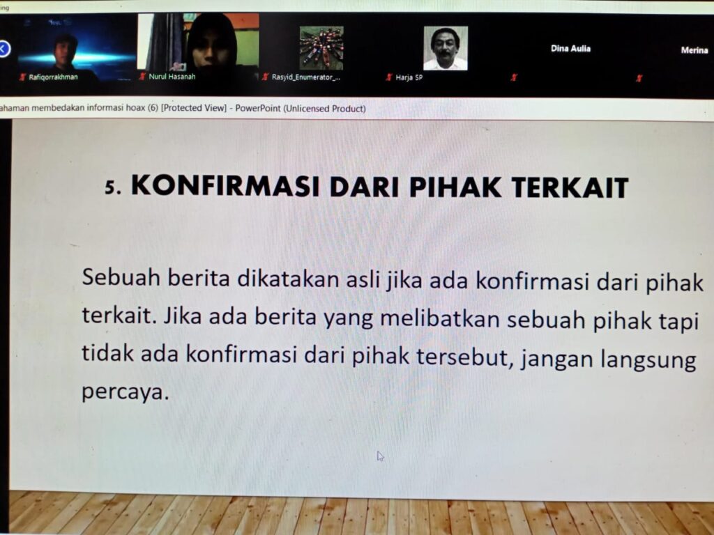 “Kalau kita bukan ahlinya tiba-tiba dapat broadcast, jangan sampai gemes atau gatal menyebarkannya,” kata Aprilia Putri. Membanding informasi dari media atau website lain.