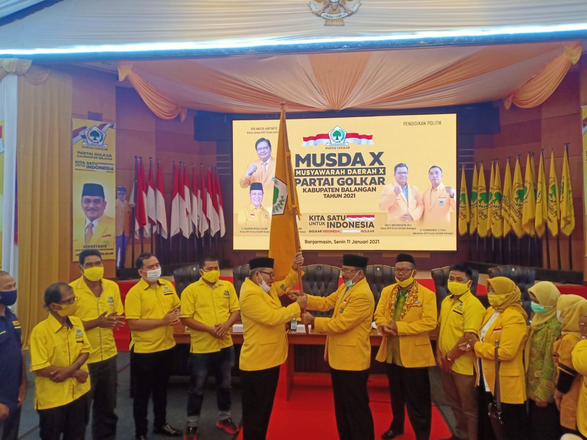 KANALKALIMANTAN.COM, BANJARMASIN – H Ansharuddin kembali terpilih menjadi Ketua DPD Golkar Kabupaten Balangan untuk periode 2021-2025 pada Musda X DPD Partai Golkar Balangan yang berlangsung di gedung DPD Golkar Kalsel, Senin (11/1/2021).