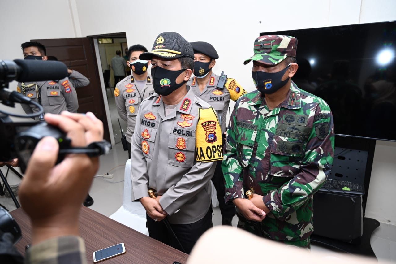 KANALKALIMANTAN.COM, BANJARMASIN – Kapolda Kalsel Irjen Pol Dr Nico Afinta bersama Plt Gubernur Kalsel Rudy Resnawan serta Danrem 101/Antasari Brigjen TNI Firmansyah menggelar press release penanganan Covid-19, Kamis (15/10/2020).