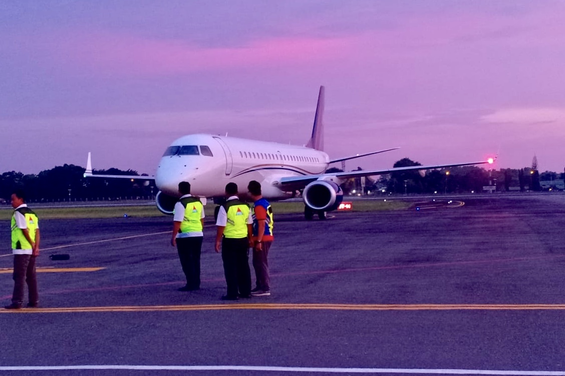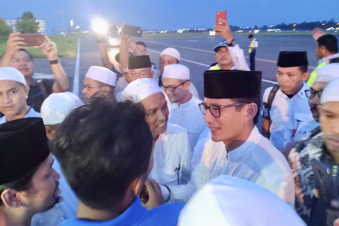 BANJARBARU, Calon Wakil Presiden (Cawapres) nomor urut 02, Sandiaga Uno akhirnya tiba di Bandara Syamsudin Noor, Minggu (10/3) pukul 18.40 Wita. Menggunakan pesawat pribadi, Sandiaga Uno datang usai mengikuti Safari Politik di Kota Bandung, Provinsi Jawa Barat dan akan langsung menghadiri perhelatan akbar Haul ke-14 Guru Sekumpul di Martapura Kabupaten Banjar.