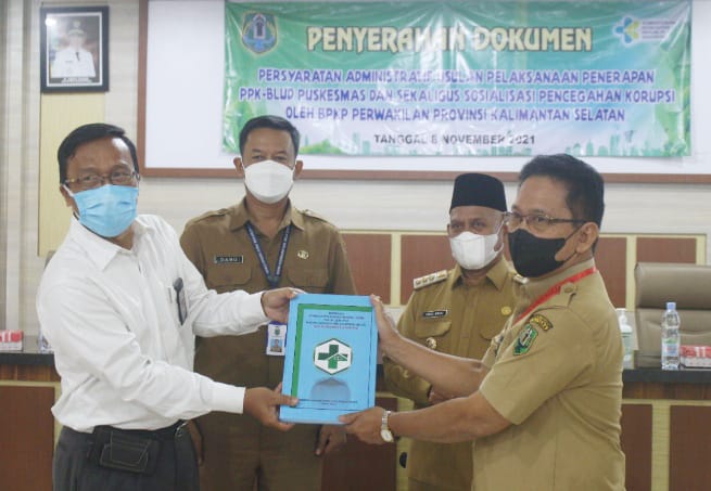 “Tiga di antaranya sudah menerapkan PPK BLUD sejak tahun 2020, adalah Puskesmas Alabio, Puskesmas Haur Gading dan Puskesmas Sungai Malang,” ungkap Plt Kepala Dinas Kesehatan HSU Danu F Fotohena, usai mengikuti penyerahan dokumen persyaratan usulan pelaksana penerapan PPPK-BLUD Puskesmas, Senin (8/11/2021).