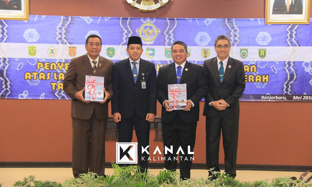 BANJARBARU, Walikota Banjarbaru H Nadjmi Adhani bersama Wakil Walikota dan Ketua DPRD Kota Banjarbaru menerima laporan hasil pemeriksaan atas keuangan pemerintah daerah 2017 dari BPK RI Perwakilan Kalsel, Rabu (30/5).