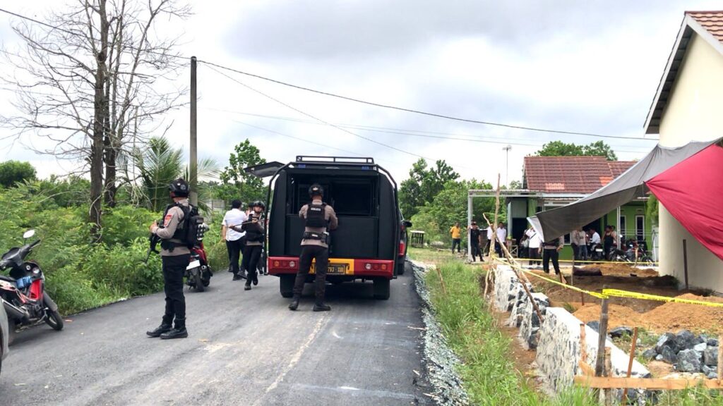 KANALKALIMANTAN.COM, BANJARBARU – Tim penjinak bom (Jibom) Detasemen Gegana Satuan Brimob Polda Kalsel mengamankan benda asing diduga mortir di Komplek Guntung Harapan Mas RT 34 RW 05, Kelurahan Guntung Manggis, Kecamatan Landasan Ulin, Kota Banjarbaru, Senin (7/7/2025) pagi.