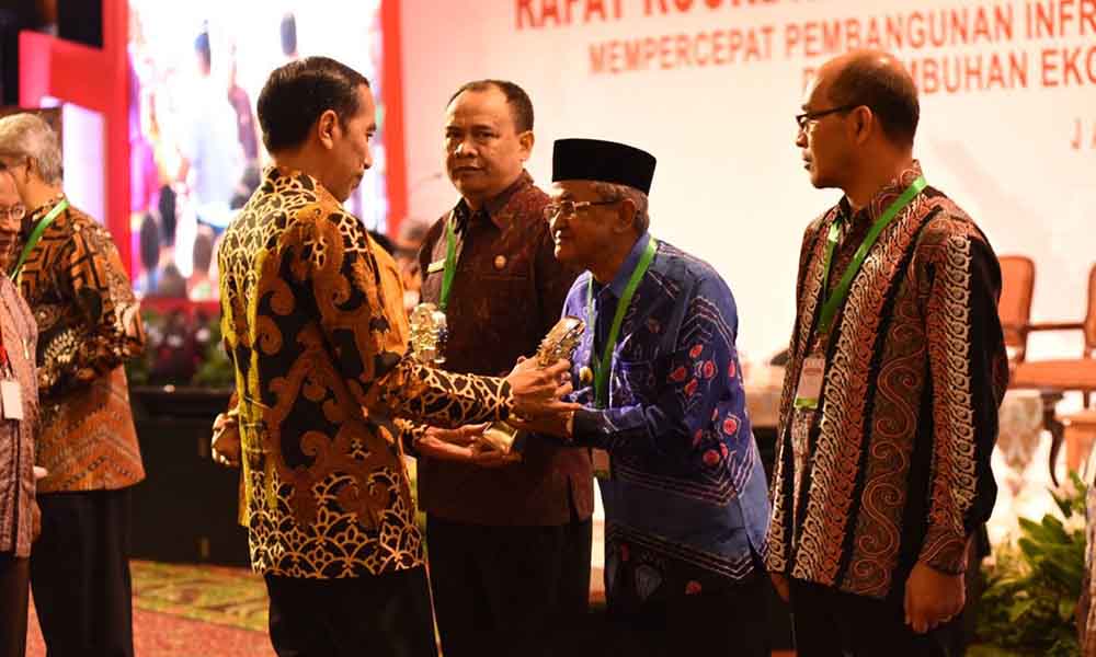 Penghargaan TPID terbaik diserahkan langsung Presiden Joko Widodo dan diterima oleh Bupati Banjar KH Khalilurrahman, di Hotel Grand Sahid Jaya, Jakarta, Kamis (26/7).