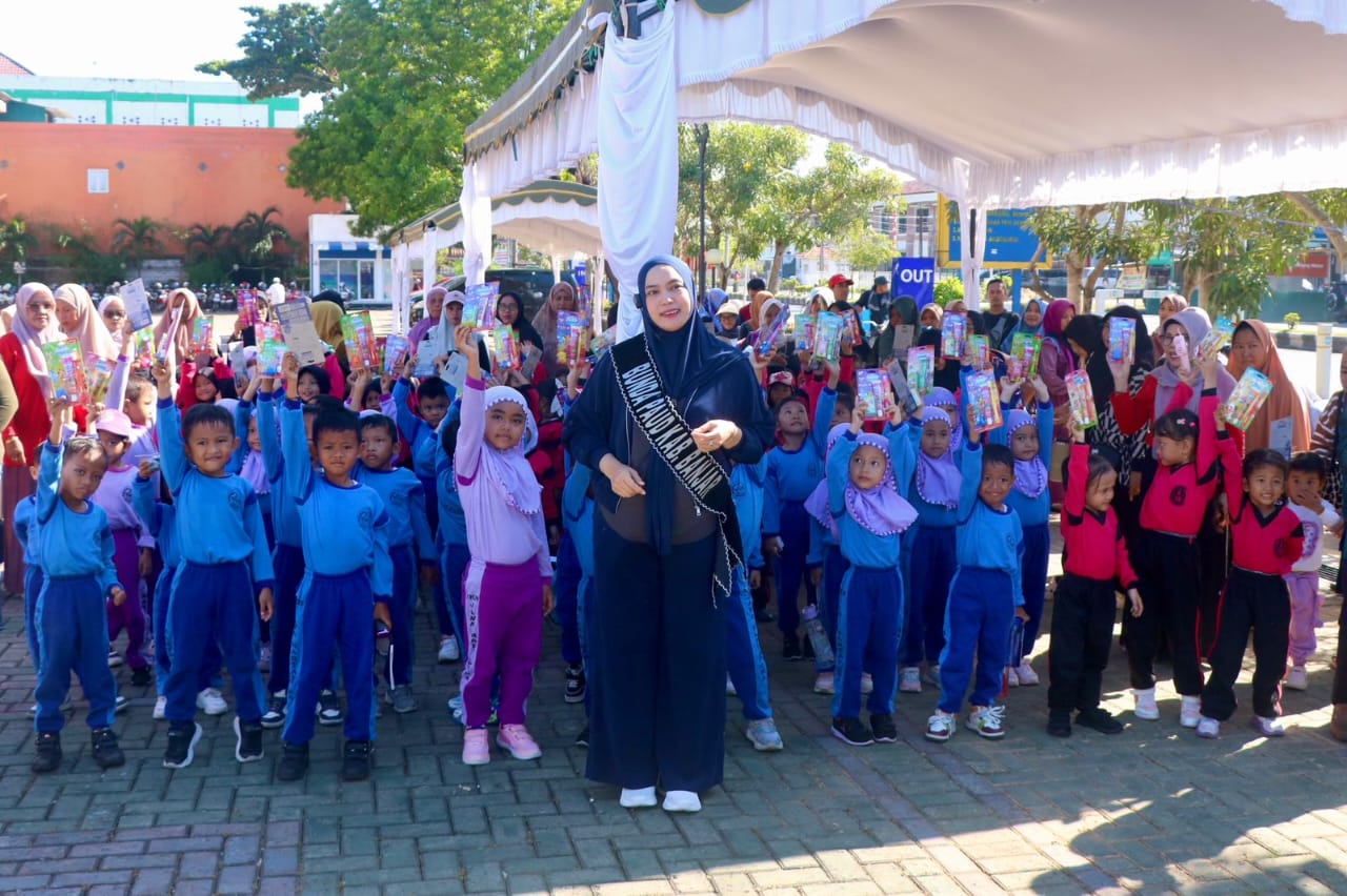 Kegiatan penuh keceriaan itu turut dihadiri Bunda PAUD Kabupaten Banjar Hj Nurgita Tiyas, Kepala Dinas Pendidikan Banjar Hj Liana Penny, perwakilan Dinas Kesehatan, para guru TK, serta orang tuamurid.