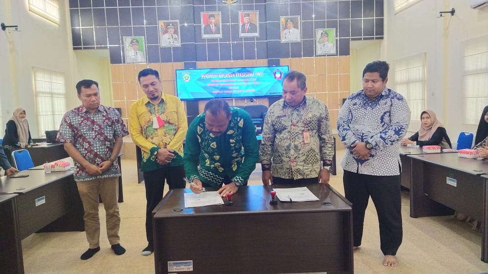 Penandatanganan kerja sama berlangsung fi aula DPMPSPTTK Balangan, Kamis (7/7/2022), antara Rektor ITS Mandiri dengan Kepala DPMPSPTTK Balangan.