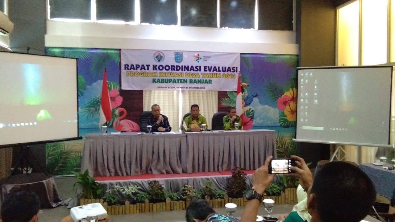 MARTAPURA, 37 orang tim inovasi Kabupaten Banjar, 40 orang tim pelaksana desa dan 47 orang tim pendamping desa mengikuti Rapat Koordinasi dan Evaluasi Inovasi Desa Tahun 2018 se-Kabupaten Banjar, di Gambut, Kamis (27/12).