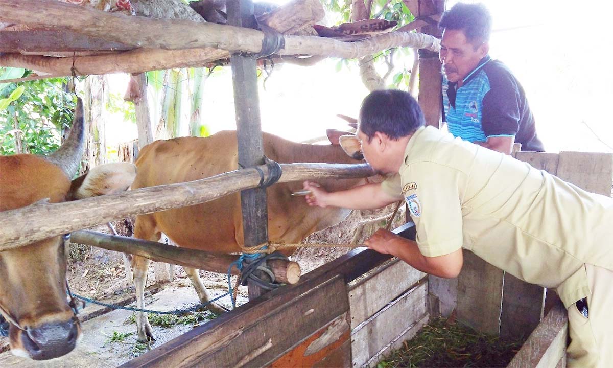 Petugas dari Disnakbun Banjar melakukan penilaian, terhadap penerapan sistem usaha peternakan kelompok ternak tersebut.