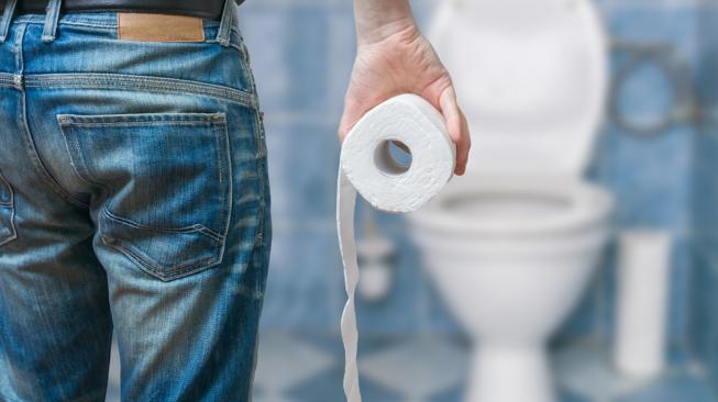 1. Menutupi dudukan toilet dengan alas, seperti tisu basah ataupun tisu kering.