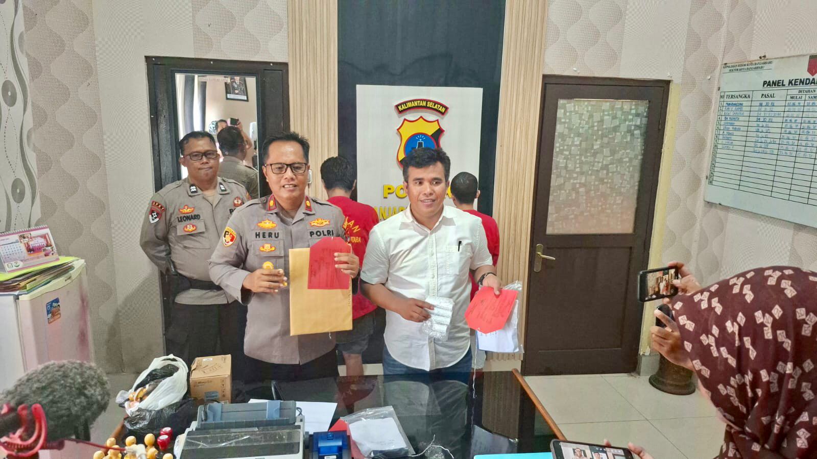 Polsek Banjarbaru Utara mengungkap kasus penipuan melibatkan Ustadz S yang melakukan pemalsuan pengadaan kitab agama Islam untuk salah satu pondok pesantren, Selasa (8/7/2025) siang. Foto: wanda