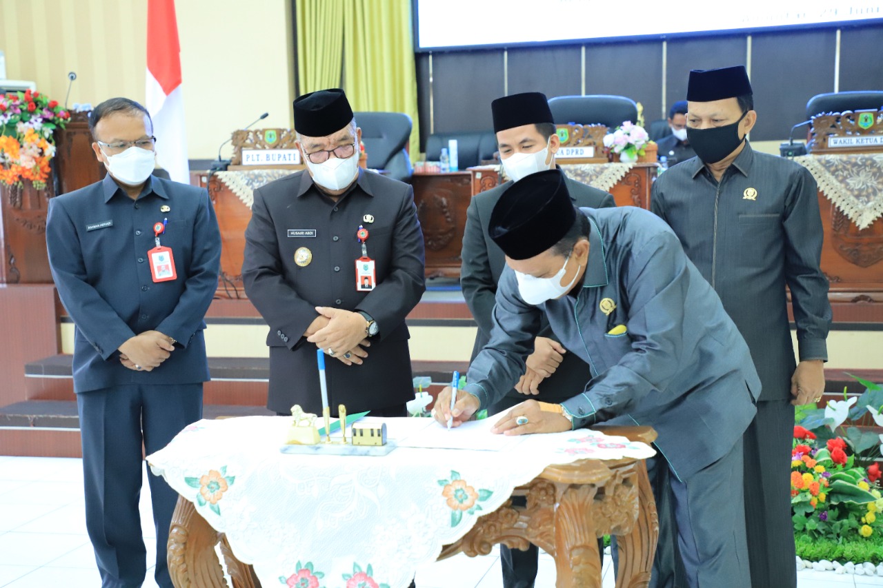Persetujuan ini ditandatangani saat digelarnya rapat paripurna yang dihadiri pimpinan dan anggota DPRD, Plt Bupati HSU, Forkopimda, SKPD, serta undangan lain di ruang rapat DPRD HSU, Rabu (29/6/2022).