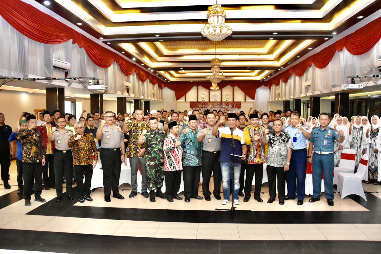 BANJARMASIN, Gubernur Kalimantan Selatan H. Sahbirin Noor bersama tokoh masyarakat melakukan Deklarasi Damai. Mereka sepakat menjaga persatuan dan kesatuan.