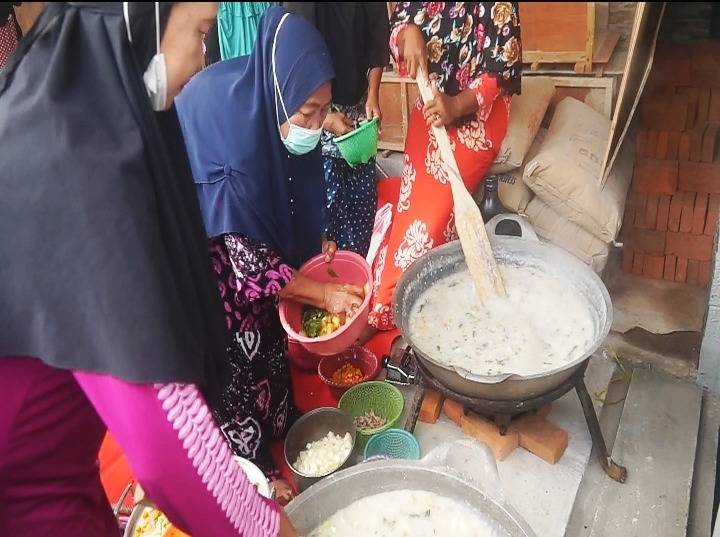 Untuk pembagian bubur, ada yang langsung diantar ke rumah-rumah warga dan ada pula yang datang mengambilnya itu dilakukan untuk menghindari kerumunan.
