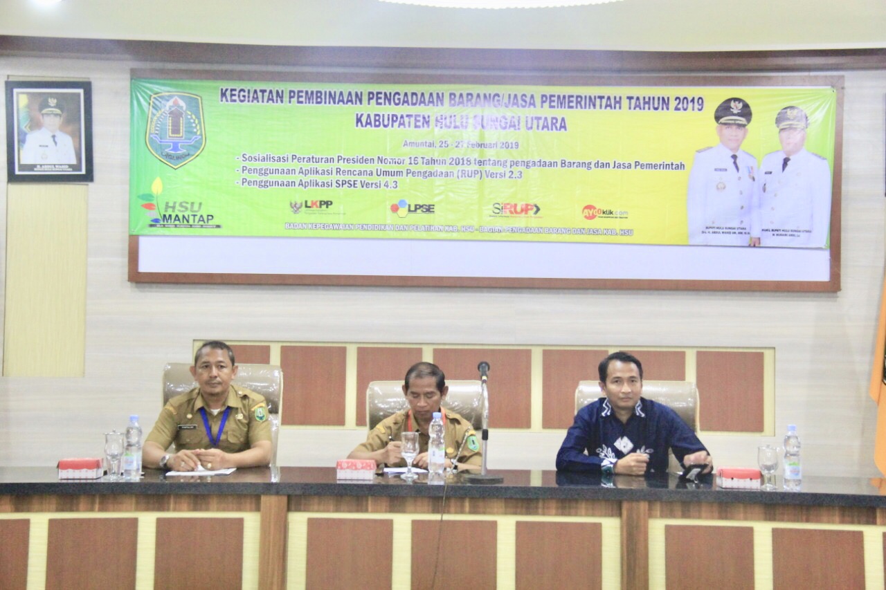 Kepala Bagian PBJ Setda HSU H Syaifullah mengatakan, kegiatan ini berlangsung selama tiga hari 25-27 Februari 2019 dengan materi sosialisasi Peraturan Presiden nomor 26 tahun 2018 tentang PBJ, penggunaan aplikasi Rencana Umum Pengadaan (RUP) versi 2.3, penggunaan aplikasi SPSE Versi 4.3. Tujuannya untuk meningkatkan pemahaman proses PBJ pemerintah. khususnya proses perencanaan pengadaan sesuai peraturan yang berlaku.ÂÂ