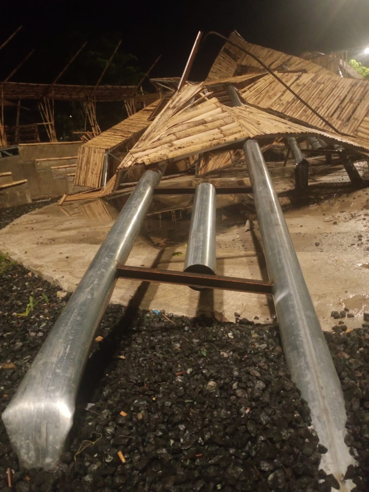 Juga sudah dipasangi plang dari bambu untuk mencegah anak kecil atau masyarakat mendekati bangunan yang roboh tersebut karena membahayakan.