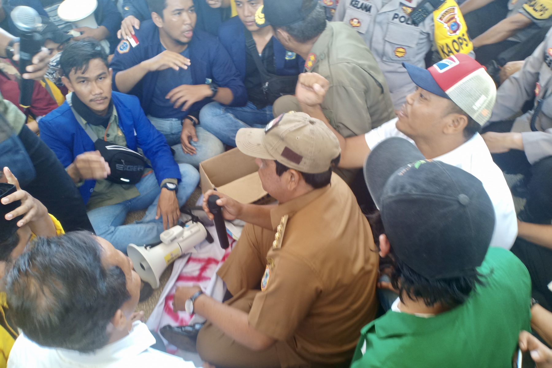 Dalam aksinya, massa mencoba masuk kedalam kantor Setda Prov Kalsel. Namun, keinginan itu tidak dilakukan setelah Gubernur Kalsel, Sahbirin Noor didampingi Kepala Dinas Kehutanan (Kadishut) Provinsi Kalsel, Hanif Faisol Nurofiq turun langsung menemui massa yang telah menunggu didepan.