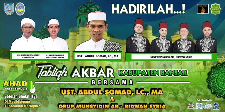 Atas dukungan dari semua pihak Rusdiansyah mengaharapkan acara Tausiyah Ustadz Abdus Somad pada Minggu (9/12) malam di Masjid Al-Karomah, Martapura, Kabupaten Banjar ini berjalan dengan sebagai mana mestinya. (rendy)