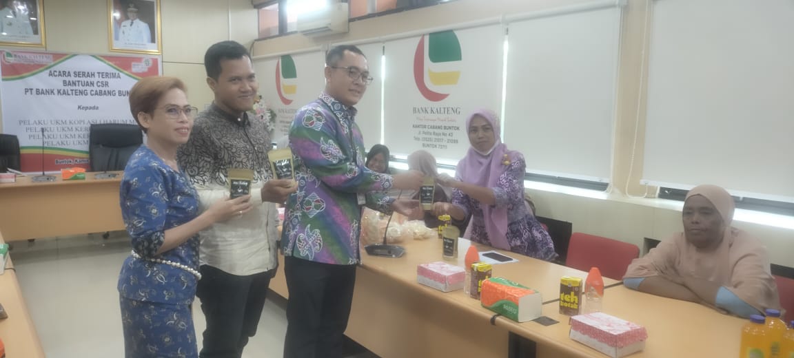 KANALKALIMANTAN.COM, BUNTOK – Bank Kalteng Cabang Buntok serahkan bantuan Corporate Social Responsibility (CSR), kepada sejumlah pelaku Usaha Kecil Menegah (UKM) di daerah tersebut.