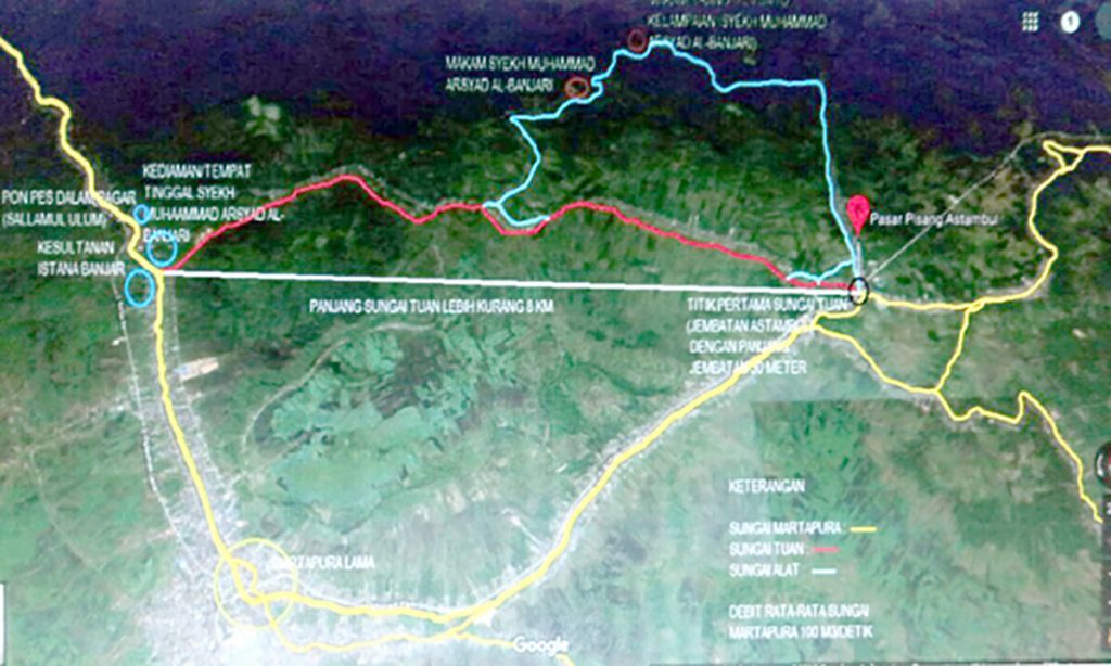 Aliran air di Sungai Tuan kemudian mengairi persawahan. Sungai Tuan adalah sungai buatan berupa sudetan dari Sungai Martapura Ulu ke Sungai Martapura Ilir. Pertemuan arus air dari Riam Kiwa dan Riam Kanan. Uniknya, Syekh Muhammad Arsyad Al Banjari menggoreskan tongkatnya sepanjang 8 kilometer untuk membuat anak sungai yang dapat mengalirkan airnya ke daratan di sepanjang Sungai Tuan.