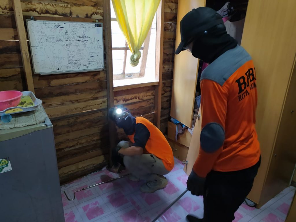 KANALKALIMANTAN.COM, BANJARMASIN – Di tengah kewaspadaan menghadapi paparan virus COVID-19, BPBD Banjarmasin melakukan evakuasi hewan di pemukiman warga. Kali ini, seekor ular didapat masuk ke rumah warga bernama Fazri, di Jalan Padat Karya Komplek Herlina Perkasa Blok Kemiri 5 No.15, Kelurahan Sungai Andai pada Rabu (18/3/2020) siang.