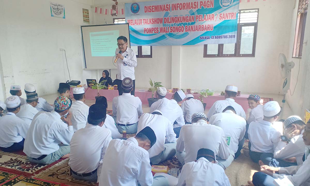 Bertempat di Ponpes Wali Songo, Kelurahan Guntung Manggis, Kota Banjarbaru, Selasa (13/8) siang, BNN Kota Banjarbaru memberikan sosialisasi pencegahan narkoba kepada 50 santri tingkat Madrasah Tsanawiyah (MTs) dan Madrasah Aliyah (MA).