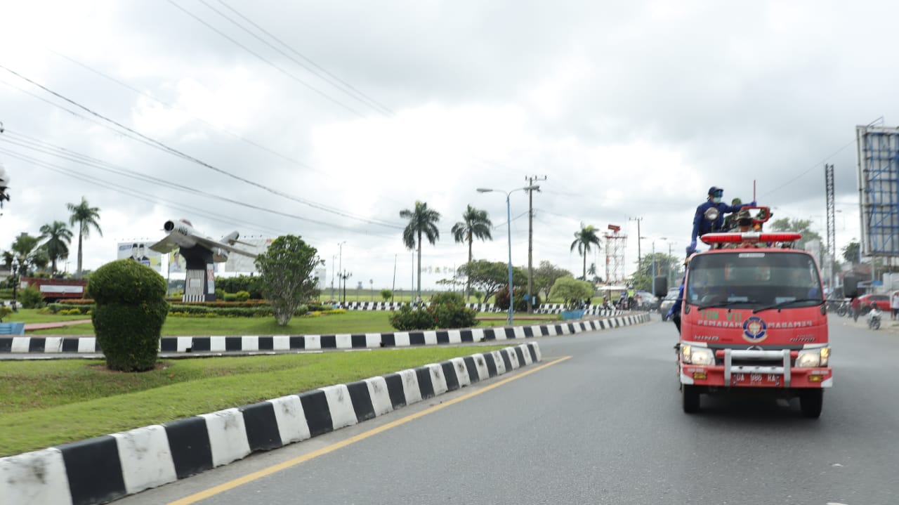 Penyemprotan disinfektan skala besar dilaksanakan di kota Banjarbaru, Selasa (31/3/2020) pagi. Foto: humpro banjarbaru