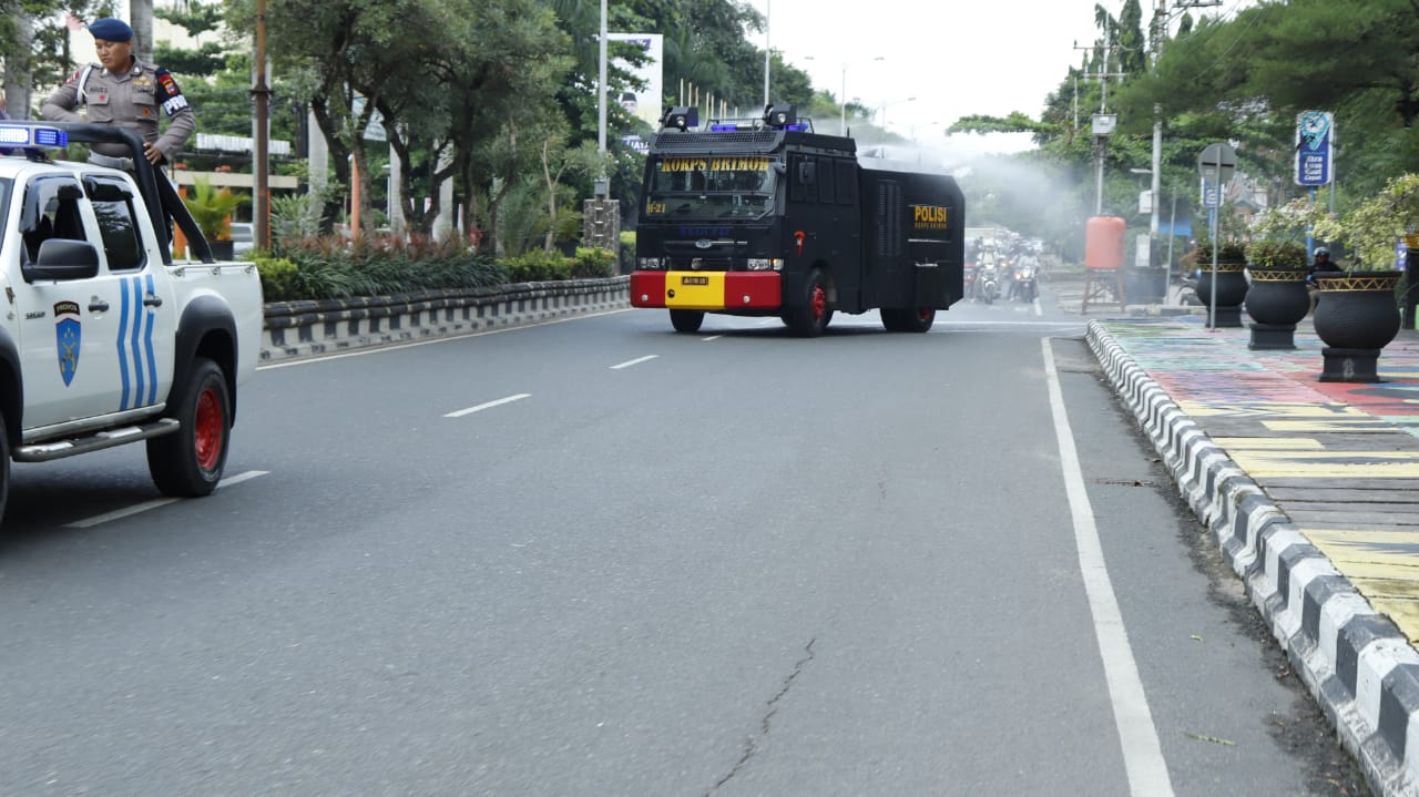 Rute penyemprotan dimulai dari lapangan Murjani kemudian ke sejumlah jalan utama di kota berjuluk Idaman iniu. Penyemprotan disinfektan memanfaatkan kendaraan dinas Polri atau kendaraan dinas instansi lain, seperti kendaraan water cannon dan mobil pemadam kebakaran sebagai sarana melakukan penyemprotan.