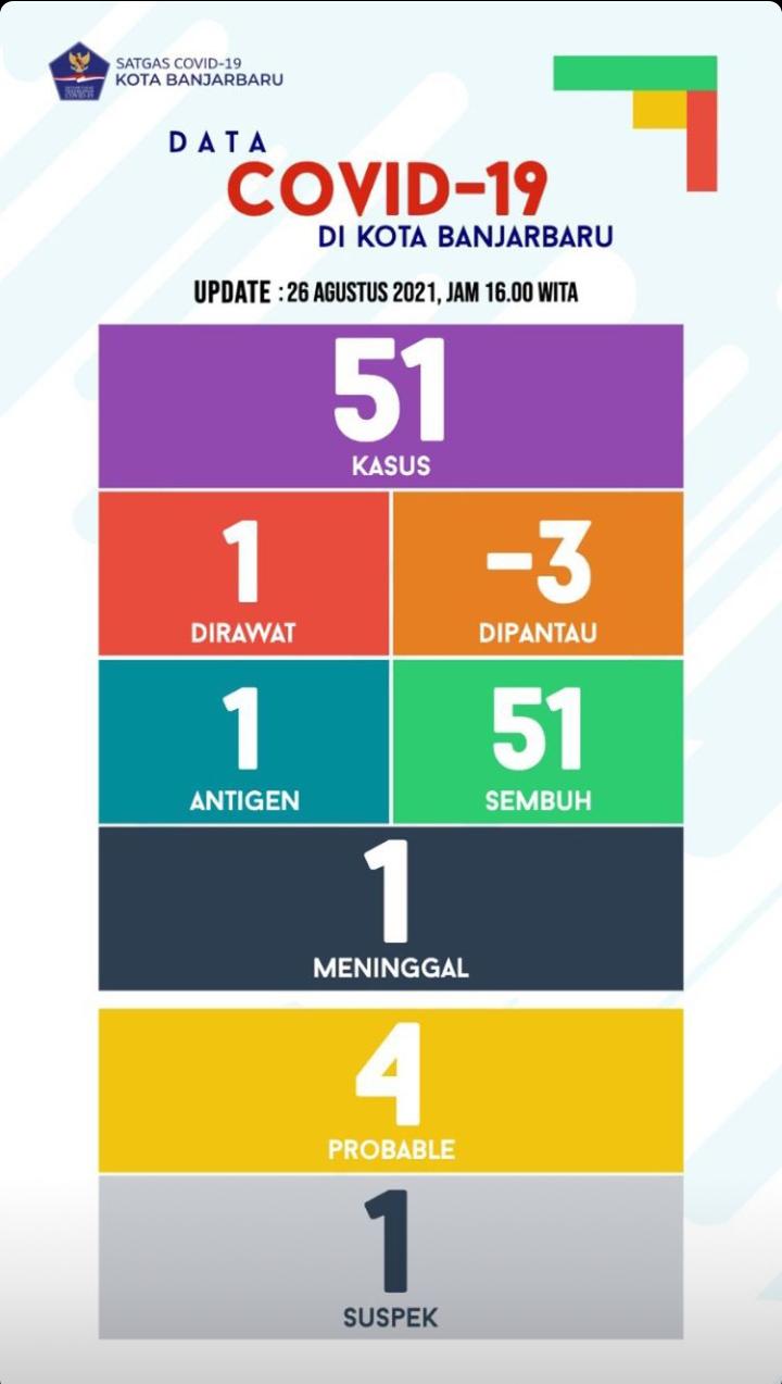 UPDATE. Kasus Covid-19 Kota Banjarbaru Bertambah 51 Orang, Sembuh 51 Orang!