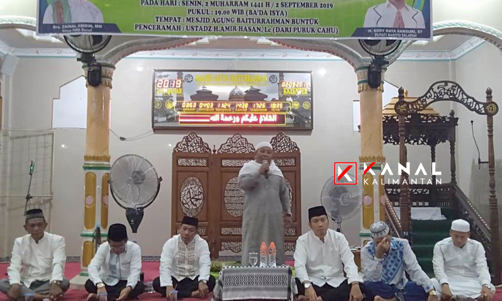 BUNTOK, Malam peringatan Tahun Baru Islam 1 Muharam 1441 H di Barsel diisi ceramah agama oleh ustadz H Amir Hasan Lc yang didatangkan dari Kabupaten Murung Raya, Kota Puruk Cahu. Kegiatan ini dilaksanakan di Masjid Agung Baiturahman Buntok, Senin (2/9) malam.
