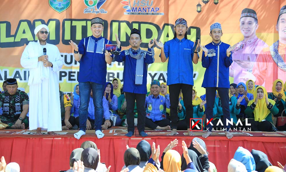 AMUNTAI, Kehadiran Ustadz Maulana bersama program TV “Islam Itu Indah†gelar road show ke Kabupaten Hulu Sungai Utara (HSU), Sabtu (4/5/2019). Acara berlangsung di halaman kantor Bupati HSU disambut antusias ribuan warga kota Amuntai dan sekitarnya.