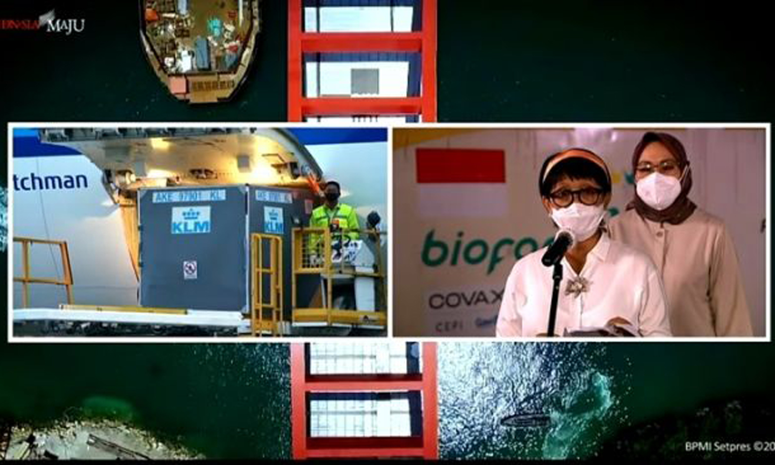 Kedatangan 1,1 juta dosis vaksin Covid-19 AstraZeneca melalui skema COVAX ini disambut baik oleh pemerintah, diwakili oleh Menteri Luar Negeri Republik Indonesia Retno Lestari Priansari Marsudi, Kepala Perwakilan UNICEF Indonesia Debora Comini, Plt Direktur Jenderal Kefarmasian dan Alat Kesehatan Kementerian Kesehatan Republik Indonesia drg Arianti Anaya MKM dan Kepala Perwakilan WHO untuk Indonesia Dr N Paranietharan.