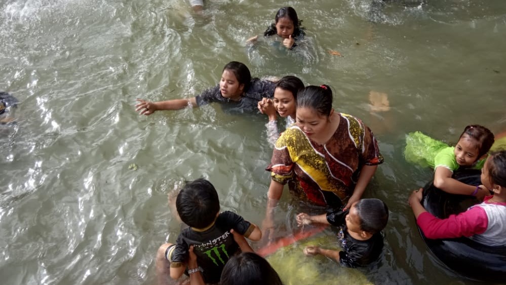 Viral di Banjarbaru, Aliran Sungai Jadi ‘Kolam Renang’ Bermain Anak-anak