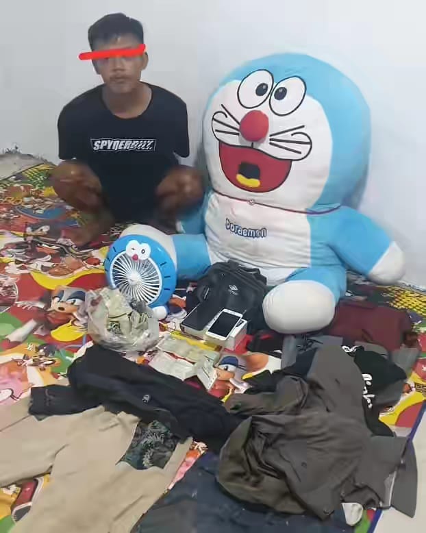 Selain pihak kepolisian juga berhasil mengamankan barang-barang yang dibeli pelaku dari uang hasil curiannya. Berupa handphone, kipas angin, dan bahkan uniknya sebuah boneka.