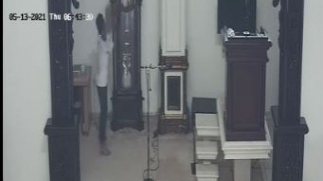 Tak hanya itu, pelaku merusak jarum jam dan seakan ingin mencabutnya. Akibat perbuatannya, jam besar dalam masjid itu rusak.