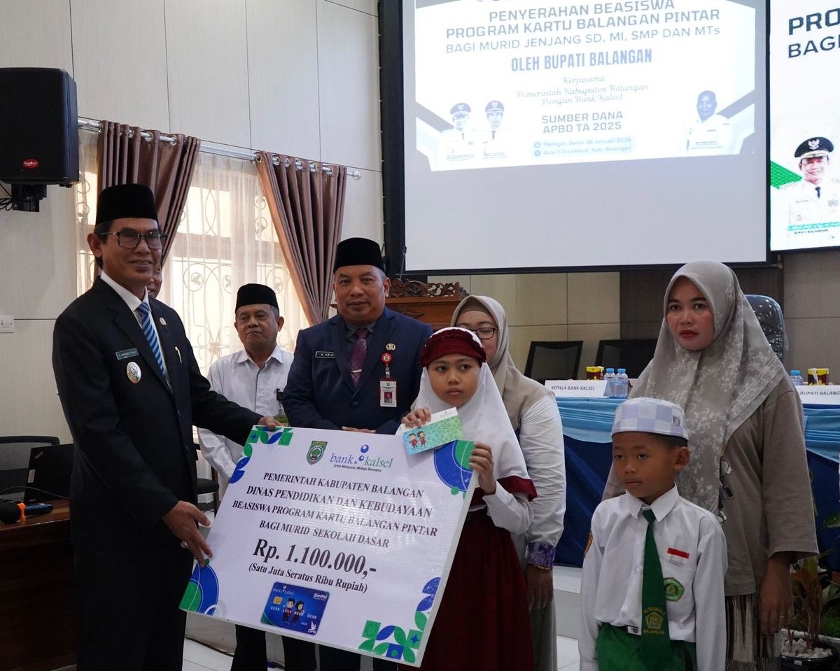 Beasiswa tersebut diserahkan dalam bentuk perlengkapan sekolah dan tabungan pendidikan, yang berlangsung di aula I Dinas Pendidikan dan Kebudayaan (Disdikbud) Kabupaten Balangan, Senin (26/1/2026) siang.