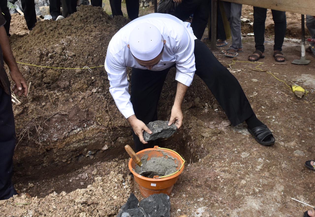 Wakil Bupati Banjar Said Idrus Al Habsyie melakukan peletakan batu pertama pembangunan mushala Baburraudhah Desa Mandiangin Barat, Jumat (21/5/2021) pagi. Foto: mckominfobanjar