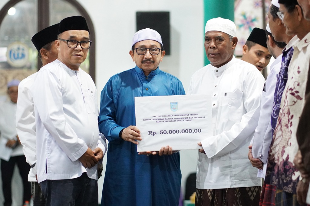 Di akhir dilakukan penyerahan bantuan keuangan yang bersifat khusus dalam rangka pembangunan dan perbaikan sarana infrastruktur ibadah kepada Masjid Nurul Huda Rp 50 juta, bantuan hibah bidang keagamaan untuk pertumbuhan Takmir Masjid Al-Muttaqin Desa Tiwingan Lama Rp439.700.000.