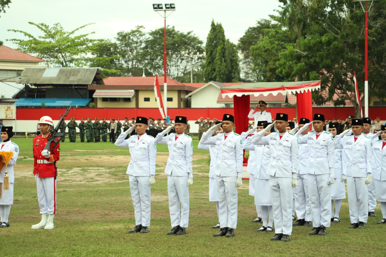Upacara berlangsung khidmat dan penuh hikmat dihadiri oleh pejabat daerah, peserta upacara, dan tokoh masyarakat.