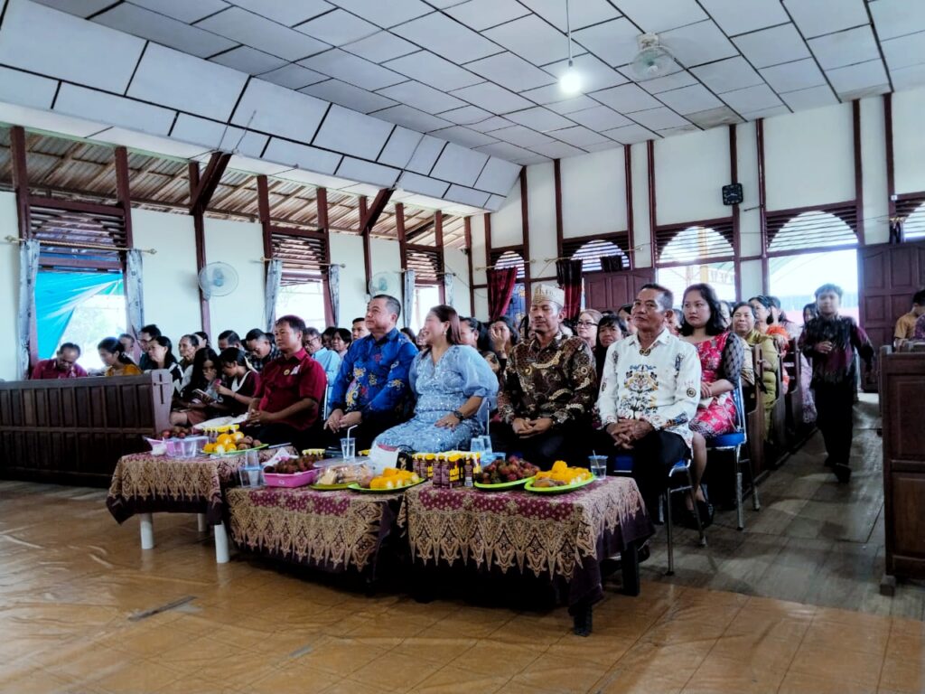 Wakil Bupati Kapuas, Dodo menyampaikan rasa syukur bisa bersama dengan jemaat dan masyarakat Desa Pulau Kaladan melaksanakan ibadah dan perayaan Natal tahun 2025.