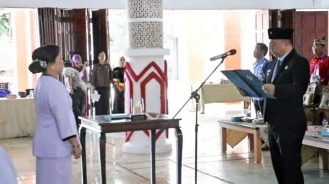 Acara pelantikan turut dihadiri unsur Forum Koordinasi Pimpinan Daerah (Forkopimda), para kepala perangkat daerah, serta tamu undangan lainnya. (Kanalkalimantan.com/ags)