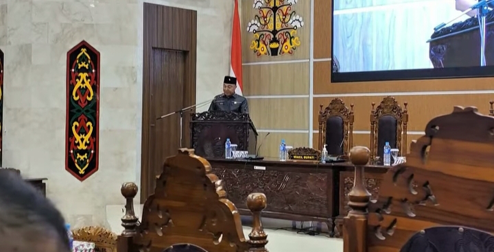 Wakil Bupati Kapuas Dodo mewakili Bupati Kapuas menyampaikan Raperda tentang pertanggungjawaban pelaksanaan APBD Kabupaten Kapuas tahun anggaran 2024, Selasa (10/6/2025). Foto: ags