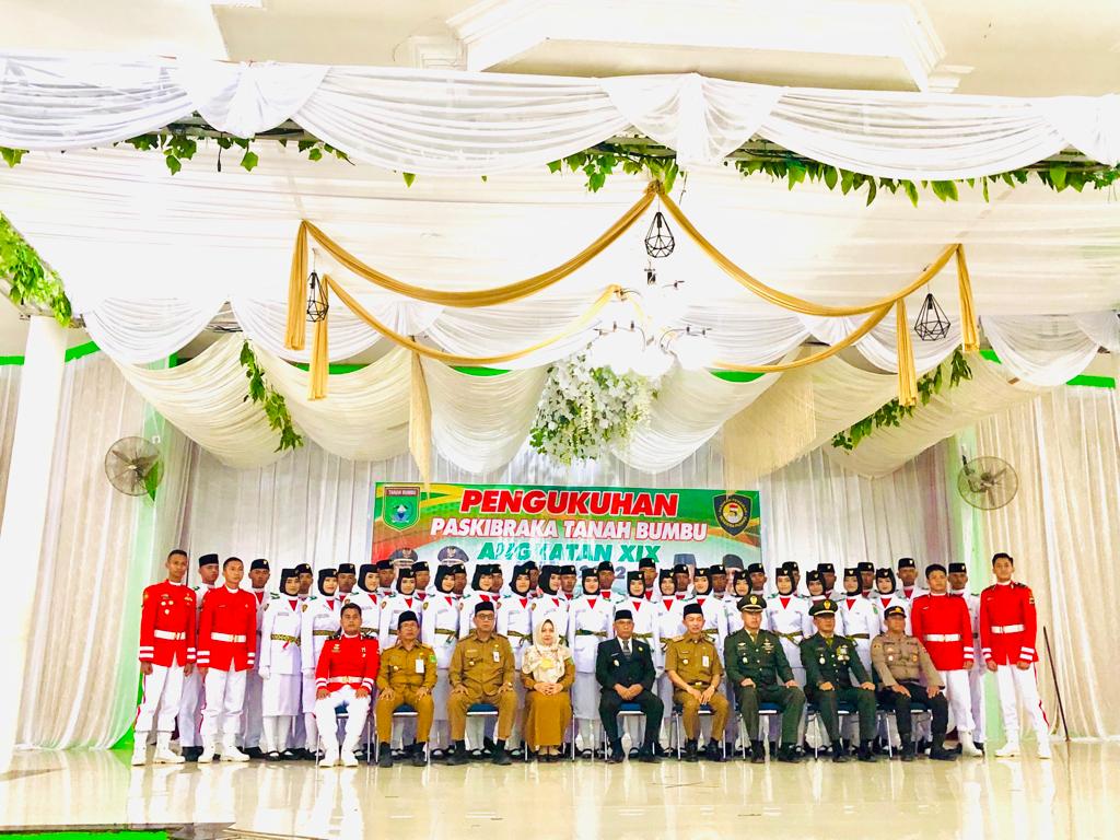 KANALKALIMANTAN.COM, BATULICIN – Wakil Bupati Kabupaten Tanah Bumbu (Tanbu) Muhammad Rusli mengukuhan Pasukan Pengibar Bendera Pusaka (Paskibraka) Tanbu Angkatan XIX tahun 2022, di Gedung Mahligai Bersujud Kapet, Senin (15/8/2022).