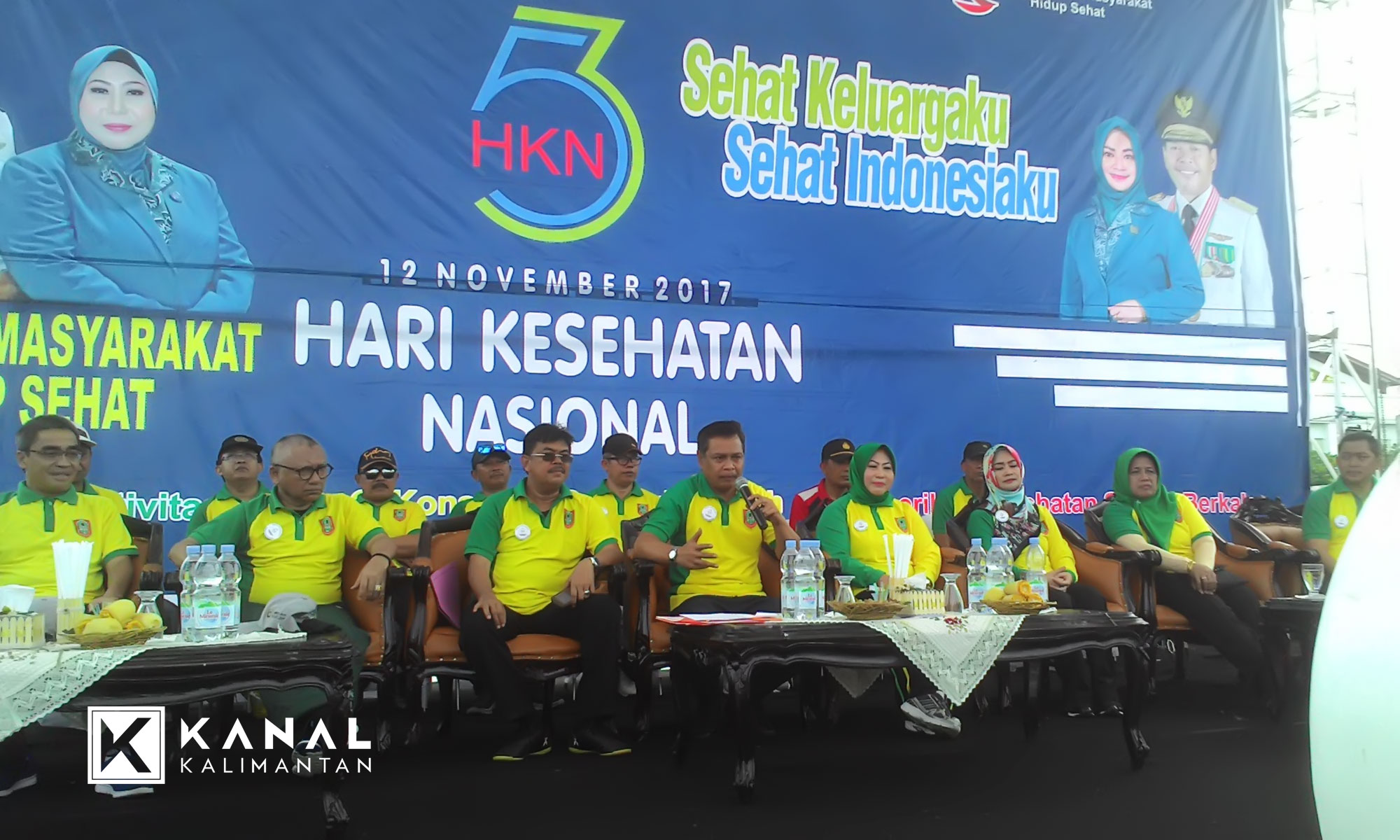 BANJARBARU, Jalan santai dan pemeriksaan kesehatan gratis mewarnai peringatan Hari Kesehatan Nasional (HKN) ke-53 yang digelar di halaman Kantor Sekretariat Daerah Pemprov Banjarbaru, Minggu (12/11). Acara yang dihadiri Wakil Gubernur Kalsel H Rudy Resnawan itu dihadiri masyarakat.