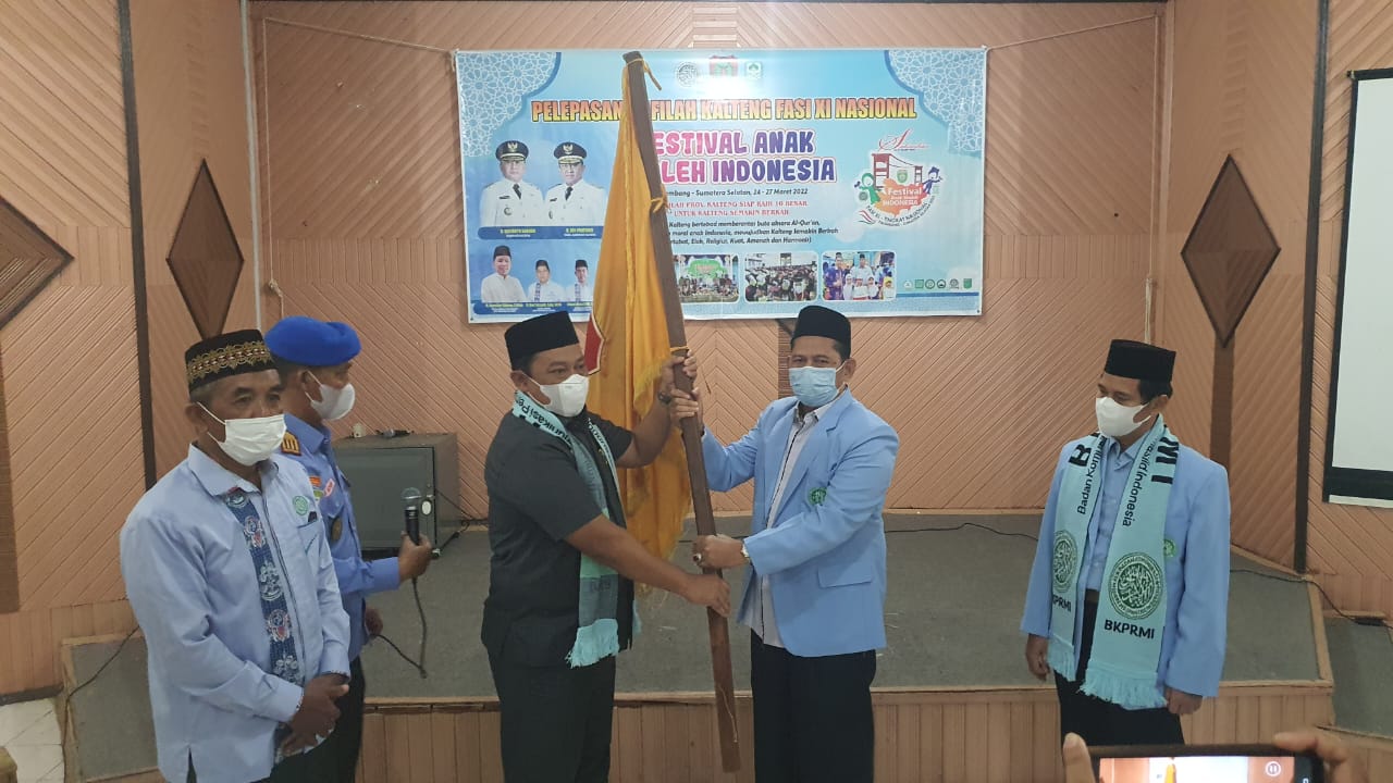 Pelepasan ditandai penyerahan bendera kepada Ketua Umum DPW Badan Komunikasi Pemuda Remaja Masjid Indonesia ( BKPRMI) Kalteng Rus’ansyah.
